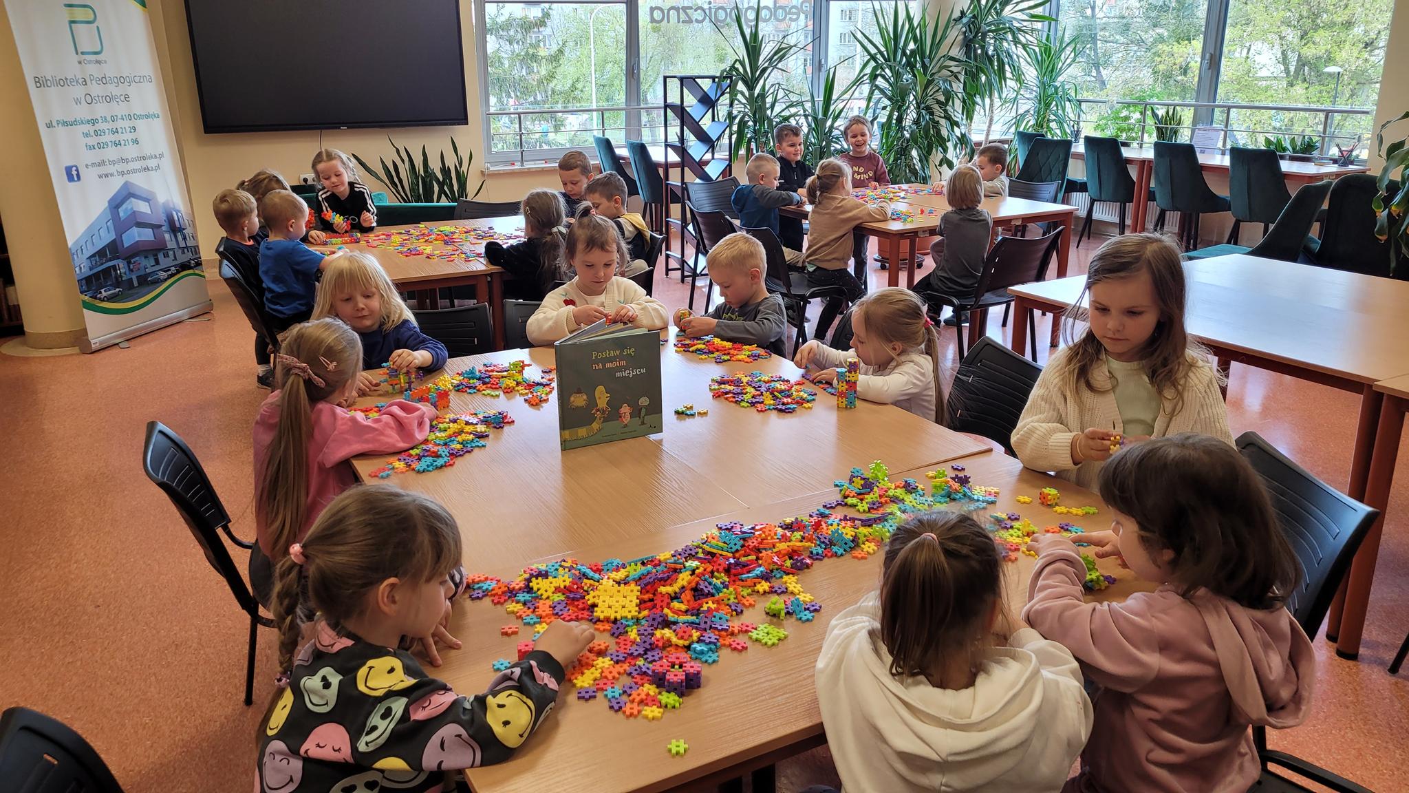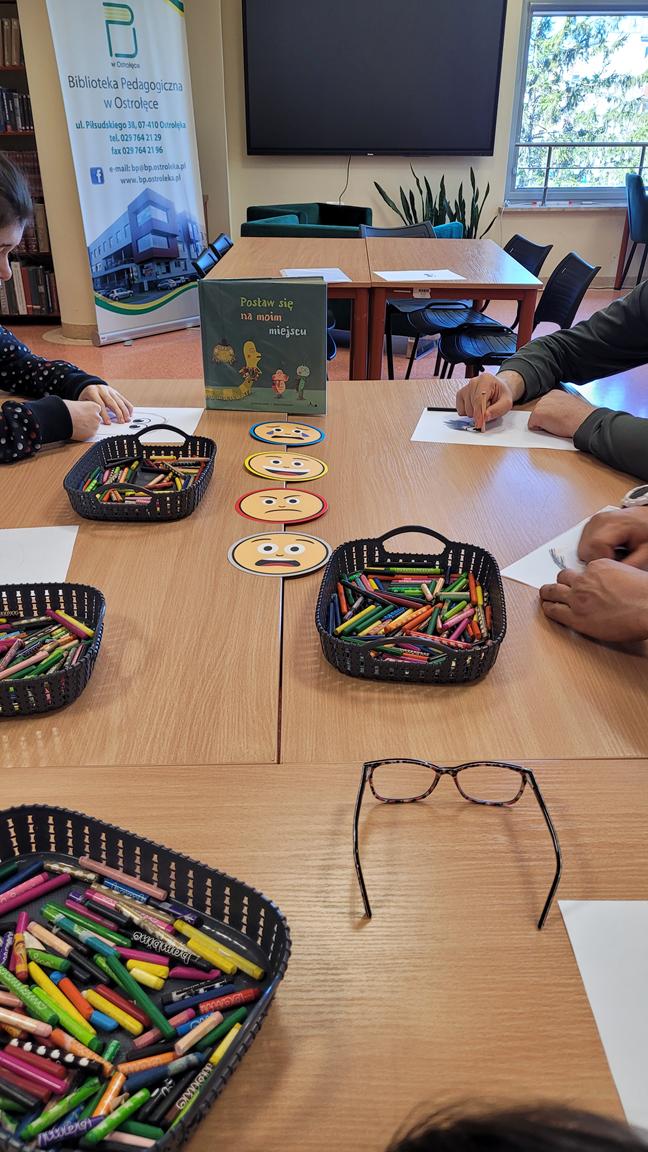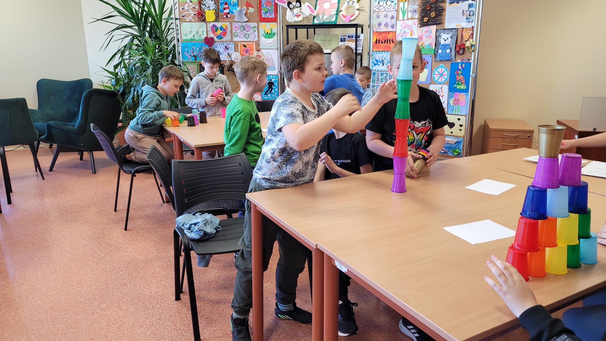 Młodsi uczestnicy zajęć rozwijali umiejętność empatii w oparciu o książkę „Poczuj to, co ja” S. Isern. Starsi wzmacniali kreatywność oraz poznawali ofertę biblioteki.