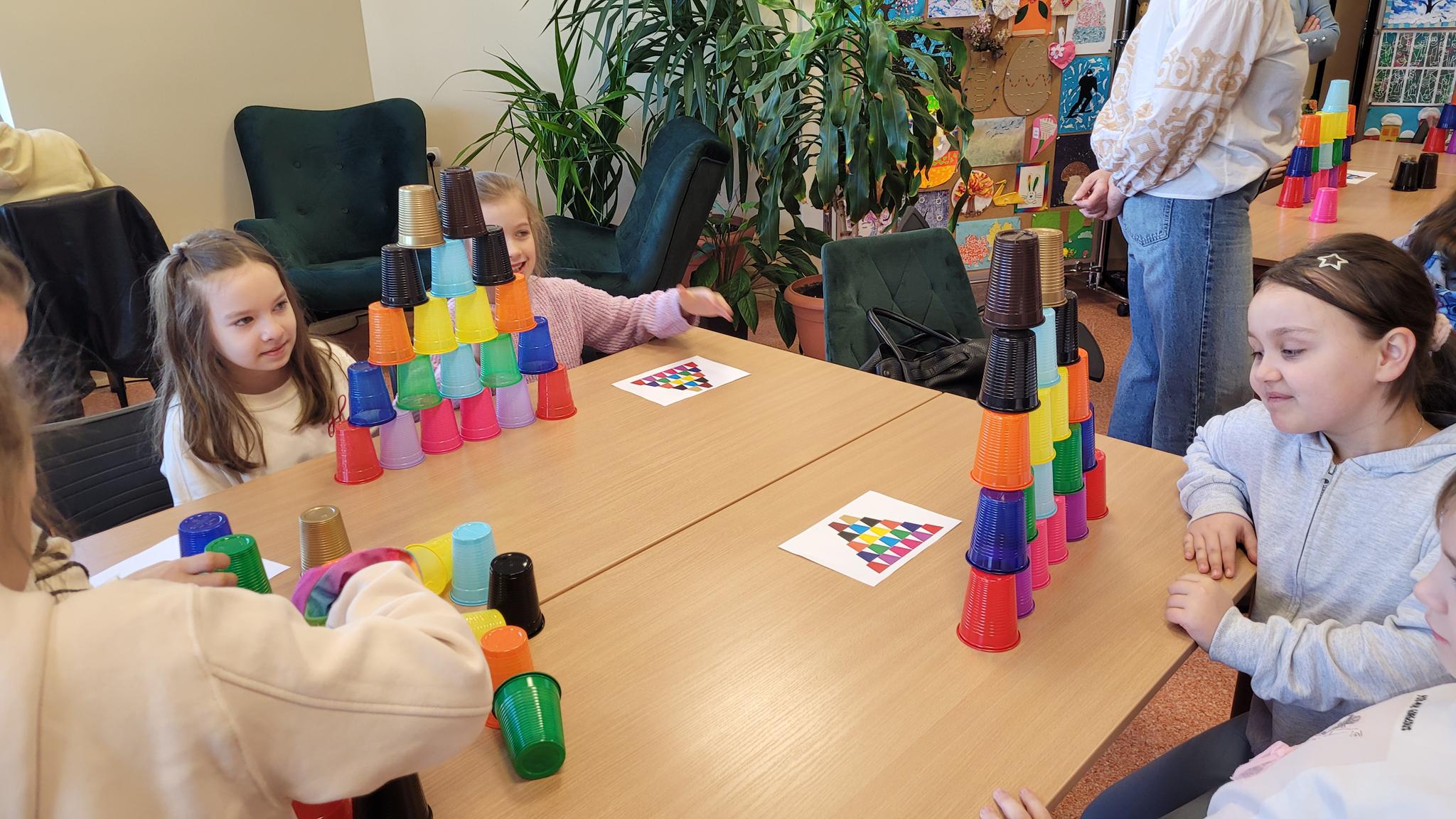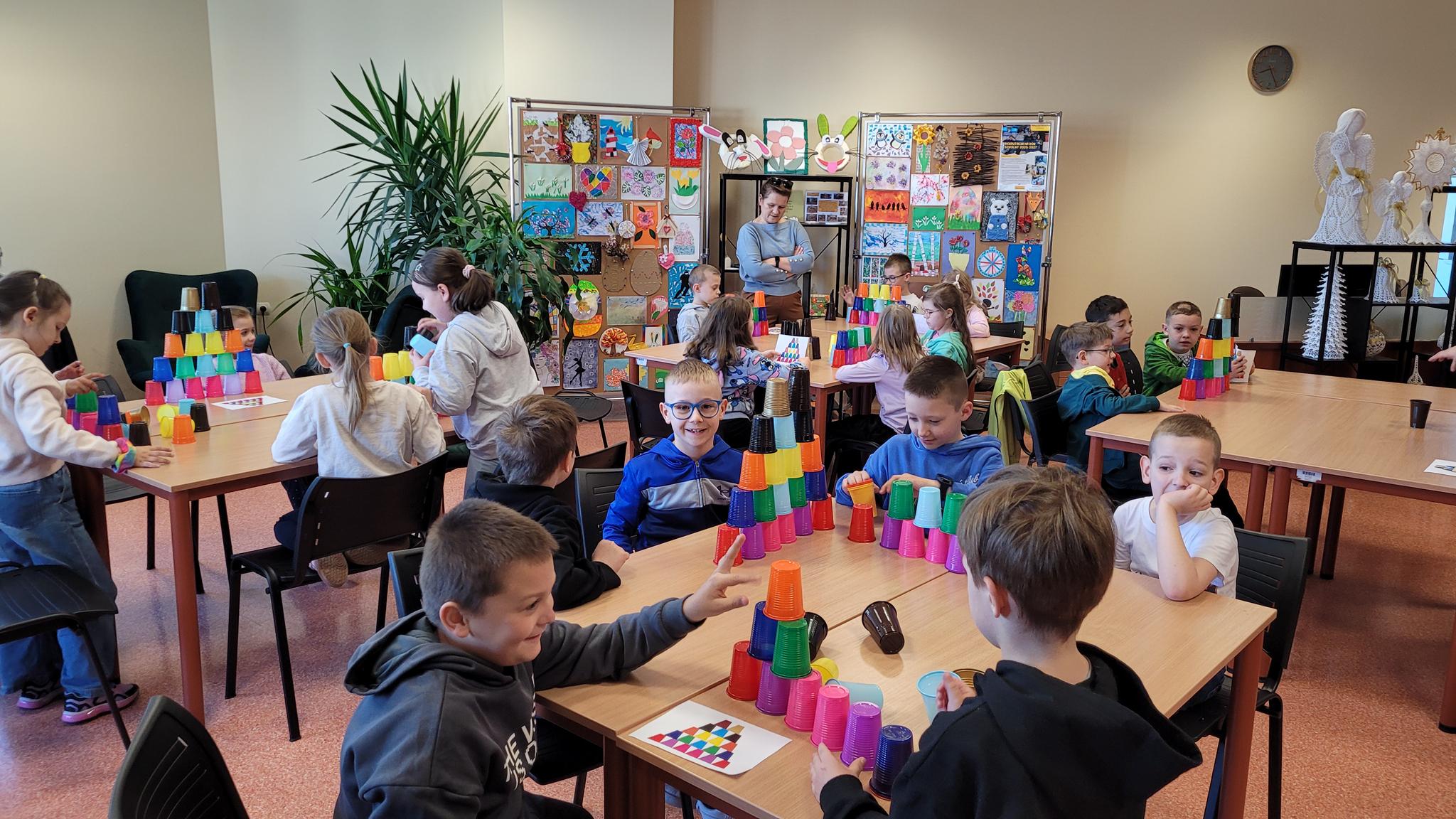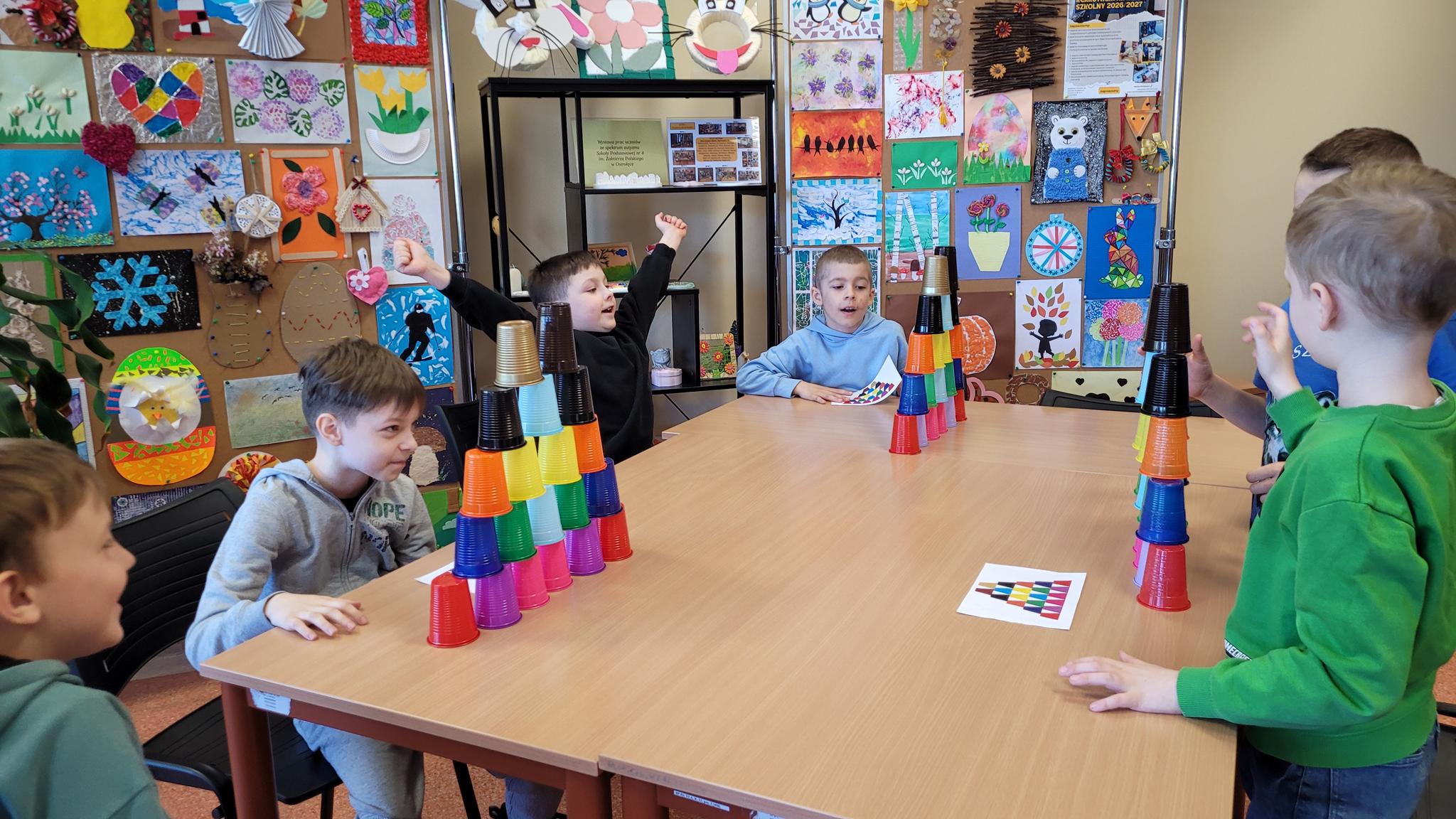 Młodsi uczestnicy zajęć rozwijali umiejętność empatii w oparciu o książkę „Poczuj to, co ja” S. Isern. Starsi wzmacniali kreatywność oraz poznawali ofertę biblioteki.