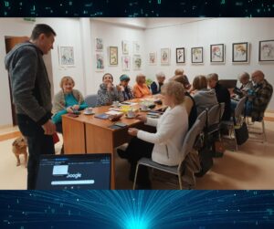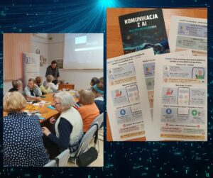 W dalszej części spotkania omówiono podstawowe zasady formułowania poleceń dla chatbotów, różnice między asystentem głosowym w telefonie a narzędziami typu ChatGPT czy Gemini, a także praktyczne sposoby komunikowania się z AI. Uczestnicy mogli obserwować „na żywo” przebieg rozmowy z chatbotem oraz zobaczyć, w jaki sposób sztuczna inteligencja wspiera wyszukiwanie informacji i dostosowywanie ich do indywidualnych potrzeb użytkownika.