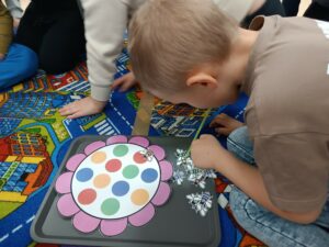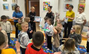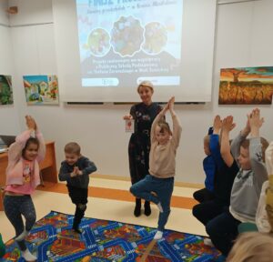 Istotnym elementem spotkania były również działania rozwijające wyobraźnię oraz umiejętność skupienia uwagi. Uczestnicy obejrzeli także prezentację podsumowującą przebieg całego projektu, zawierającą fotografie dokumentujące kolejne etapy zajęć.
