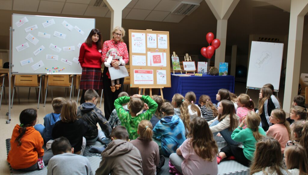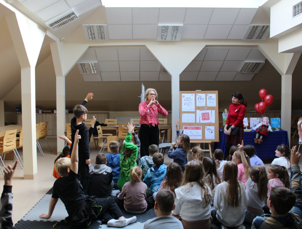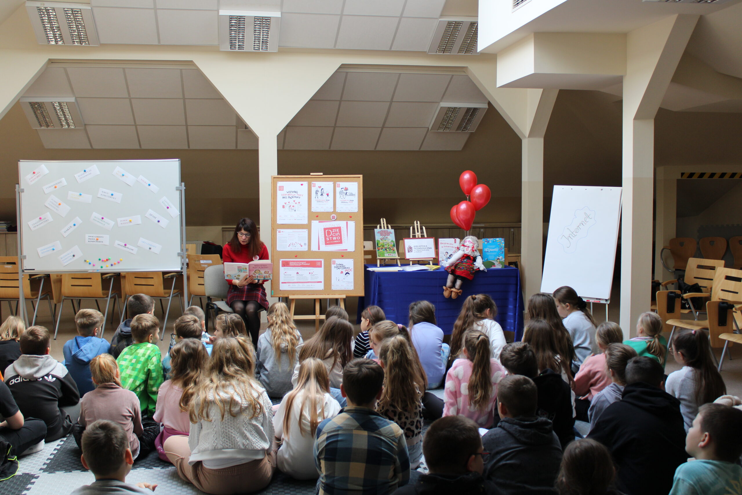 Ponadto 18 listopada gościliśmy w naszej bibliotece uczniów klasy III a i b Szkoły Podstawowej nr 7 w Siedlcach na spotkaniu poświęconym Ogólnopolskiej Akcji Dzieciństwo bez Przemocy. Hasło przewodnie kampanii brzmi „Dobre dzieciństwo daje dziecku moc”. Uczniowie mieli możliwość usłyszeć na temat zagrożeń i niebezpieczeństwa wypływającego z niewłaściwego korzystania z internetu. Odgrywane scenki utrwaliły dzieciom w jaki sposób osoba znajdująca się po drugiej stronie ekranu może manipulować i wykorzystywać pozyskane informacje. Dziękujemy Paniom i uczniom za udział w zajęciach i życzymy bezpiecznego i radosnego dzieciństwa.