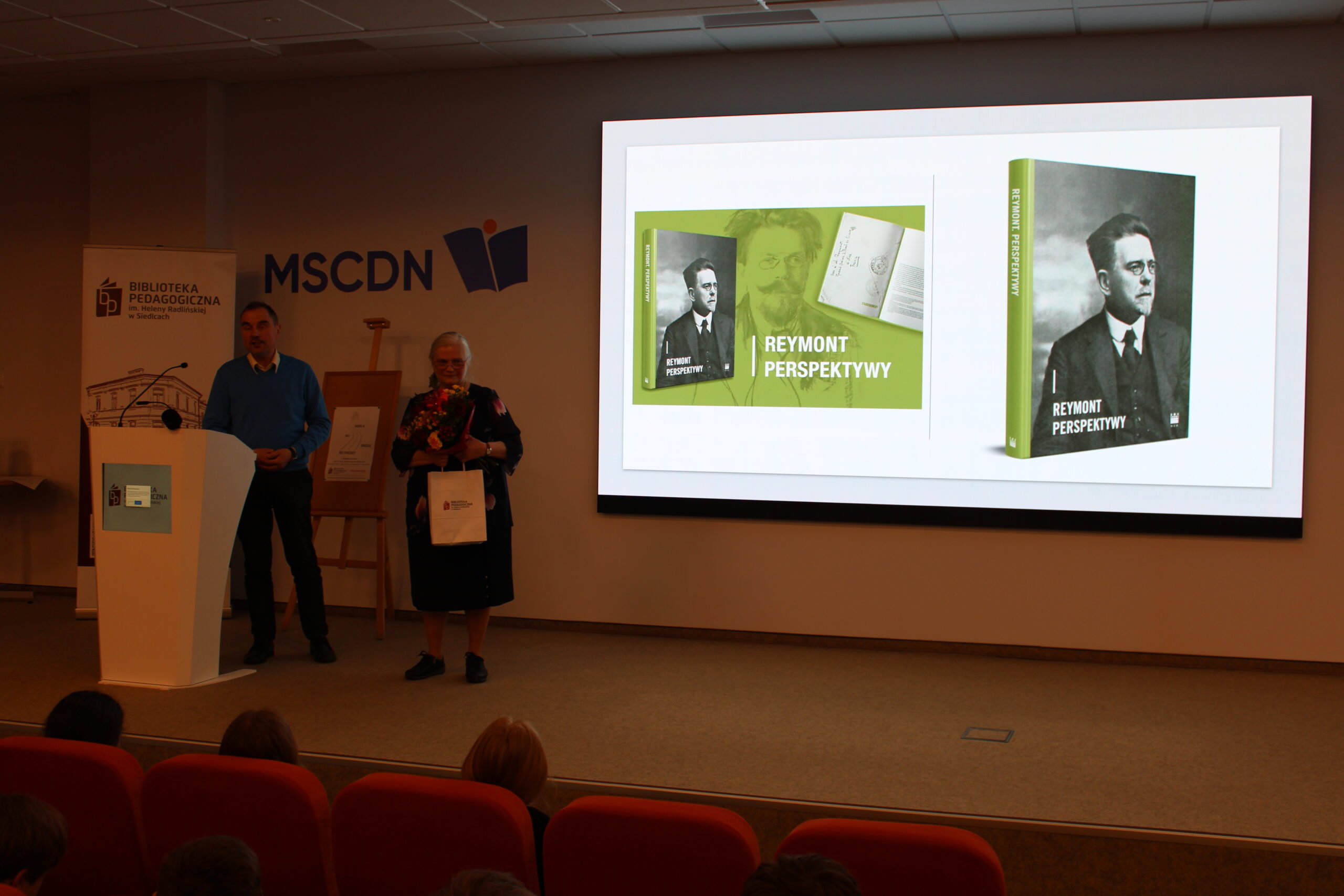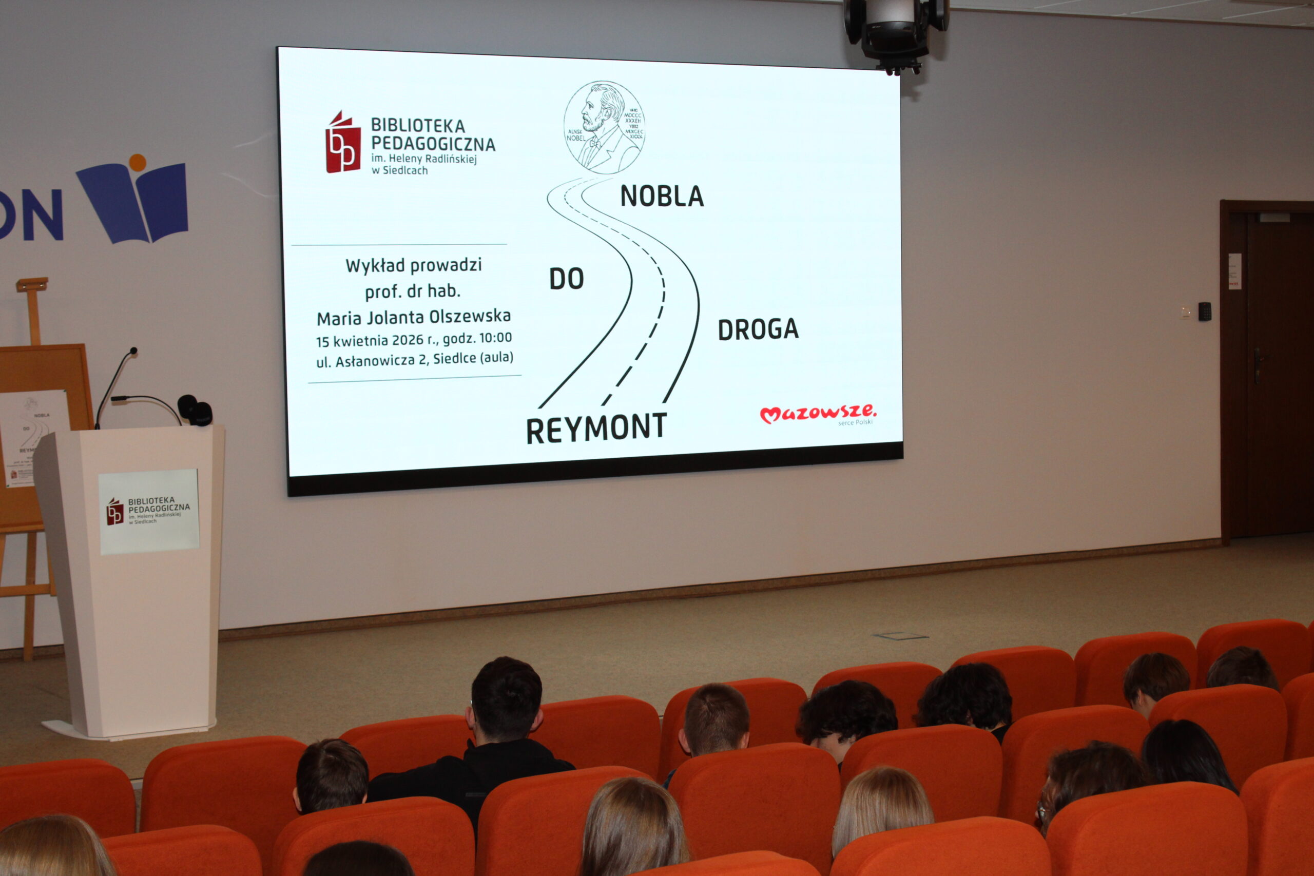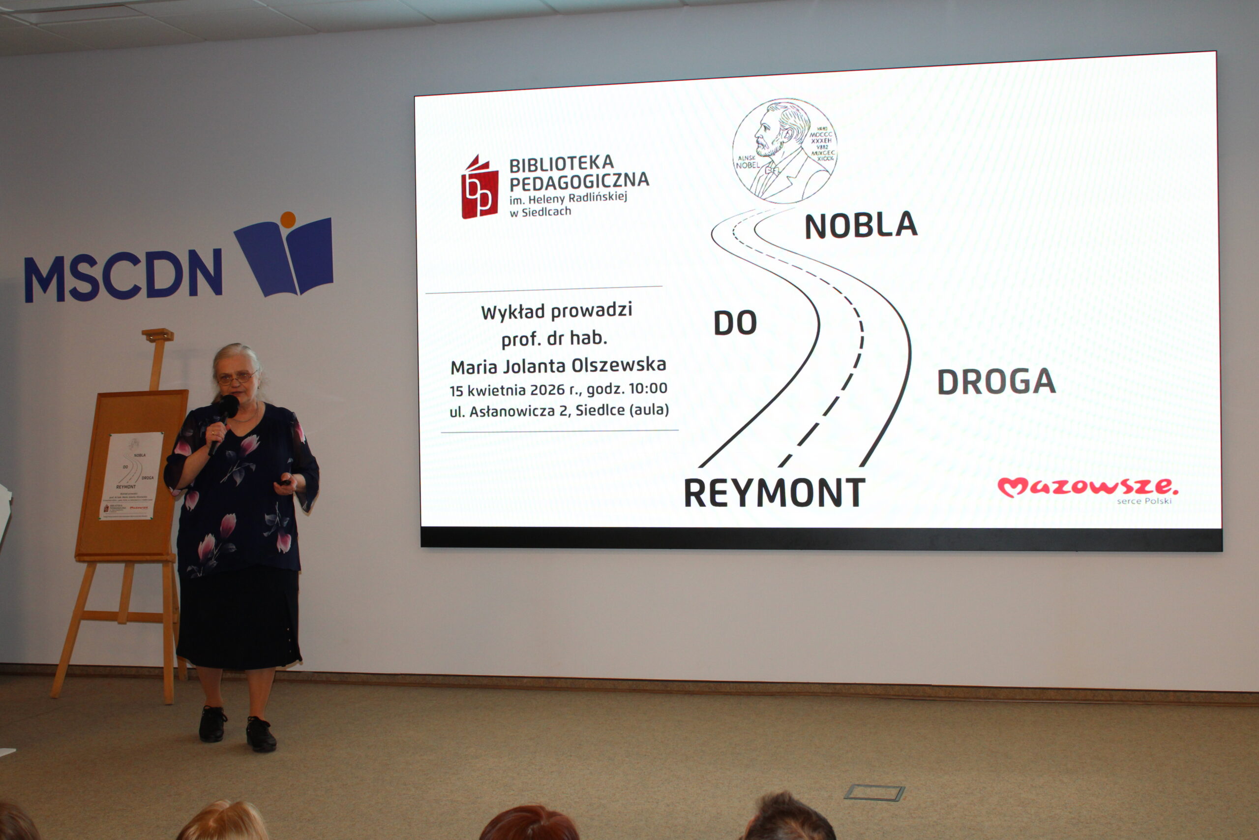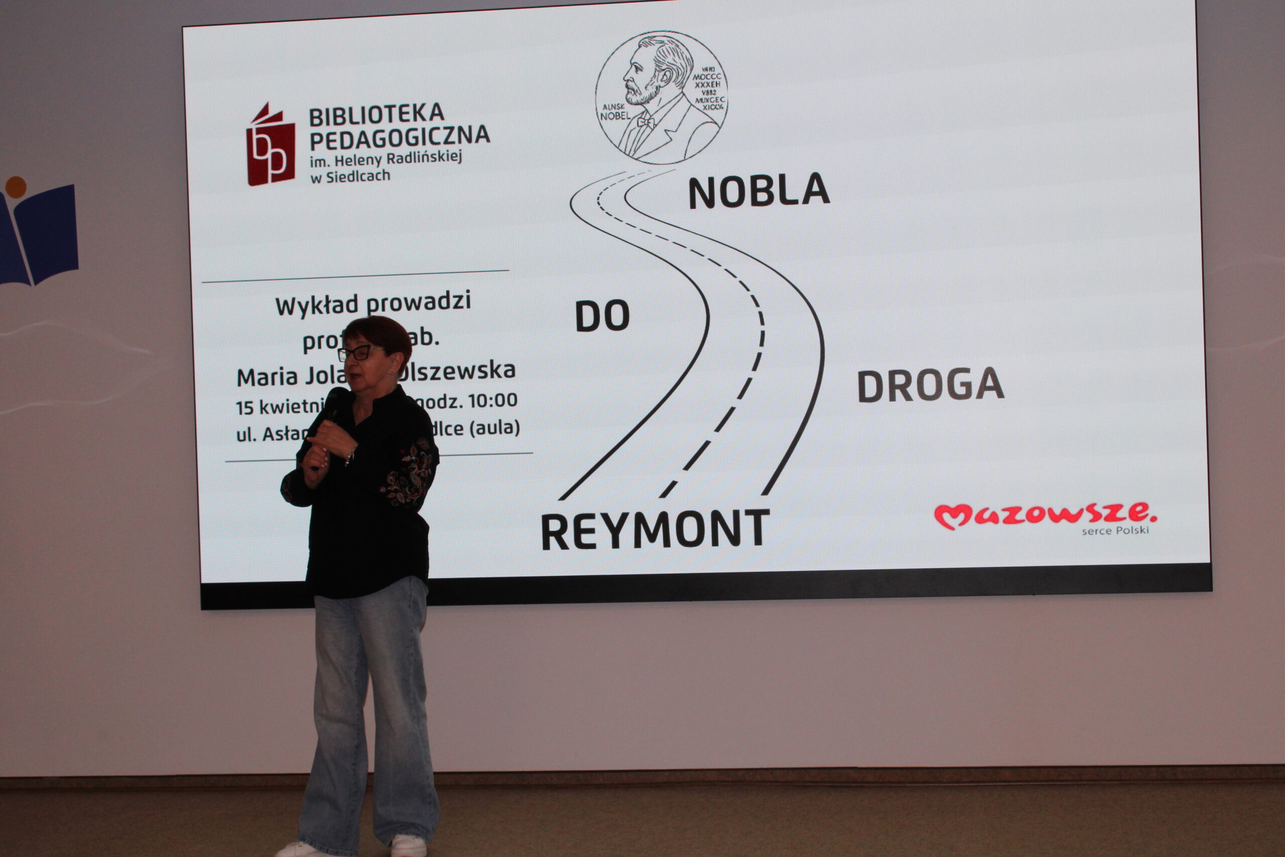 15 kwietnia bibliotekę odwiedziła prof. dr hab. Maria Jolanta Olszewska, pracownik naukowy Instytutu Literatury Polskiej Uniwersytetu Warszawskiego. Podczas wykładu przybliżyła zgromadzonym postać jednego z najważniejszych twórców w historii literatury polskiej – Władysława Stanisława Reymonta. Podkreśliła, że jego niezwykle barwna biografia mogłaby posłużyć za materiał na powieść o niemal sensacyjnej fabule. Dodatkową atrakcją spotkania był film z 1925 roku, ukazujący między innymi, ceremonię pogrzebową pisarza.