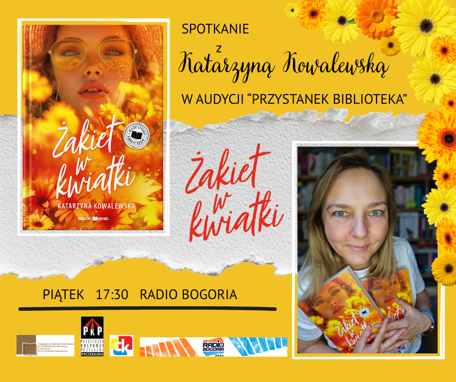 Zapraszamy już dziś do wysłuchania audycji „Przystanek Biblioteka” w Radiu Bogoria o godzinie 17:30. Naszym gościem będzie Katarzyna Kowalewska – pisarka, tłumaczka, felietonistka, adminka mediów społecznościowych. Kocha psy, upały, punk rocka i gorącą kawę. Finalistka ogólnopolskich konkursów literackich, autorka powieści obyczajowych z pazurem i humorem.