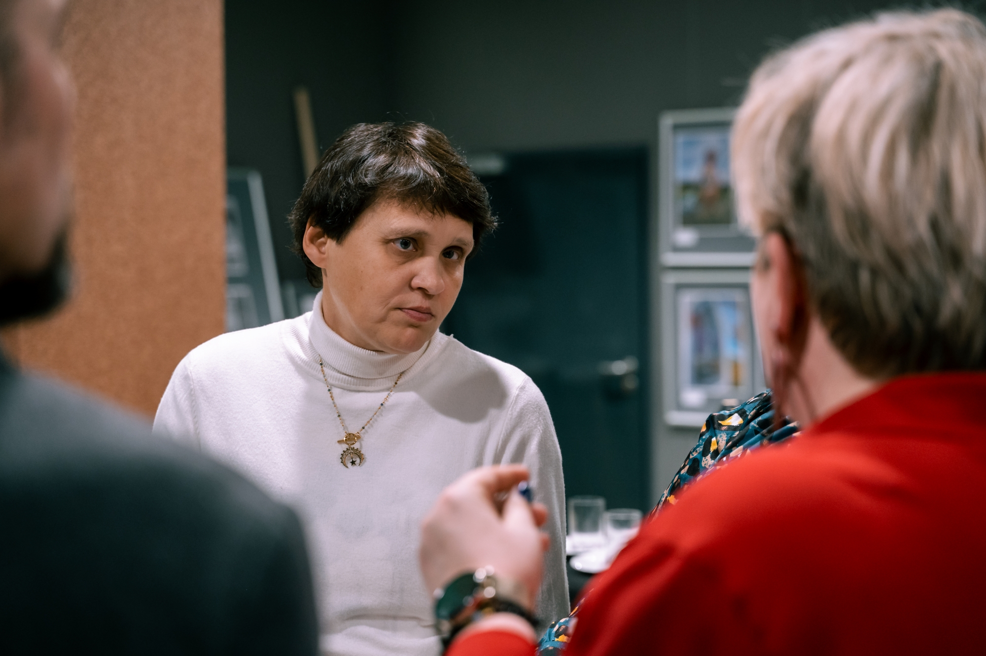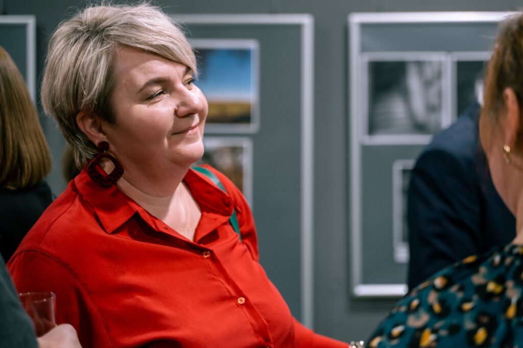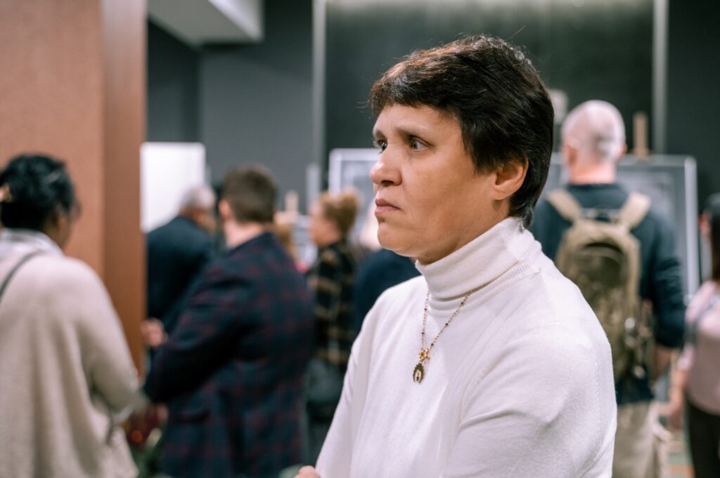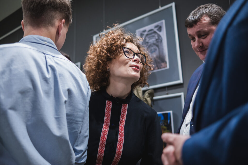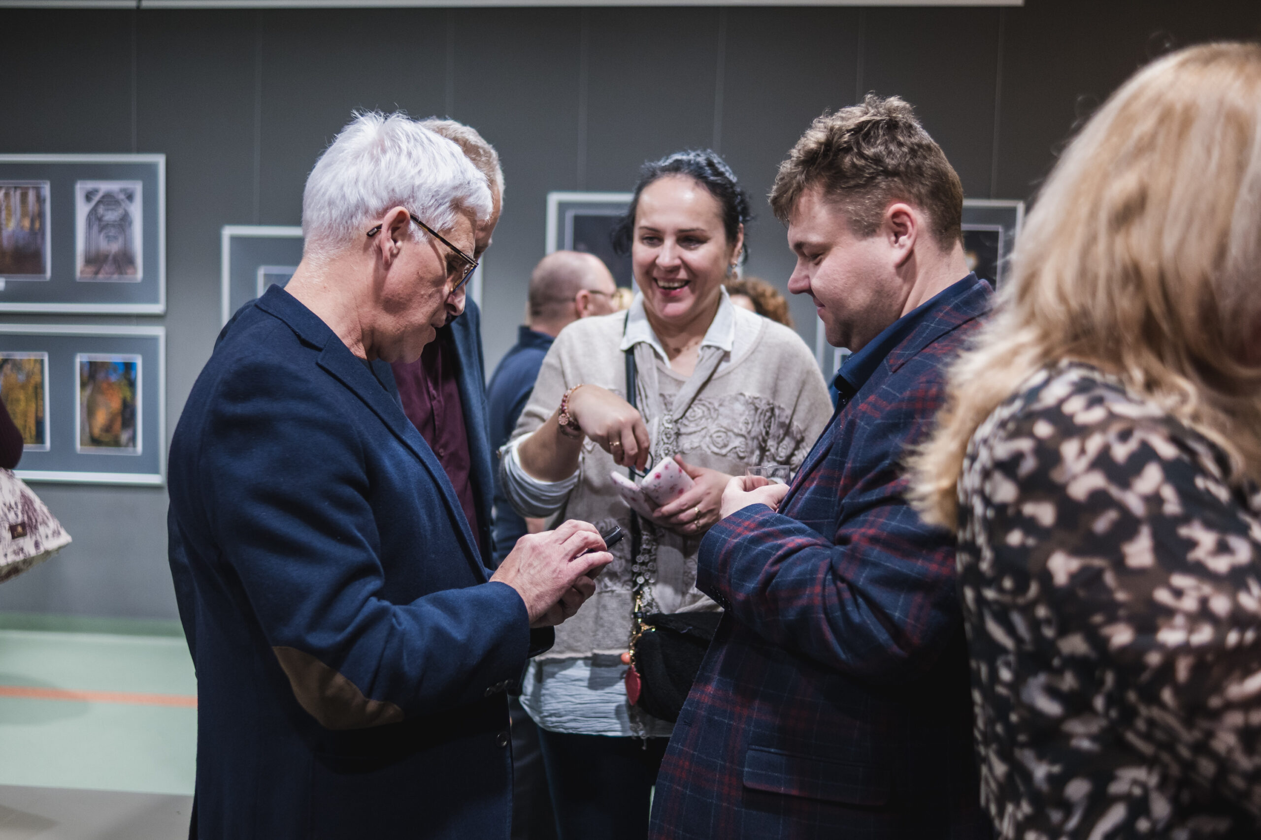 Dla naszej biblioteki szczególnie ważne było to, że w wydarzeniu uczestniczyła dyrektorka Biblioteki Pedagogicznej im. H. Radlińskiej w Siedlcach – Dorota Salamon, która nie tylko przyjechała na wernisaż, ale również zabrała głos. W swoim wystąpieniu podkreśliła znaczenie edukacji wizualnej, roli bibliotek w budowaniu kultury uważności i dumy z działań podejmowanych wspólnie przez filię w Łosicach i lokalne środowisko.