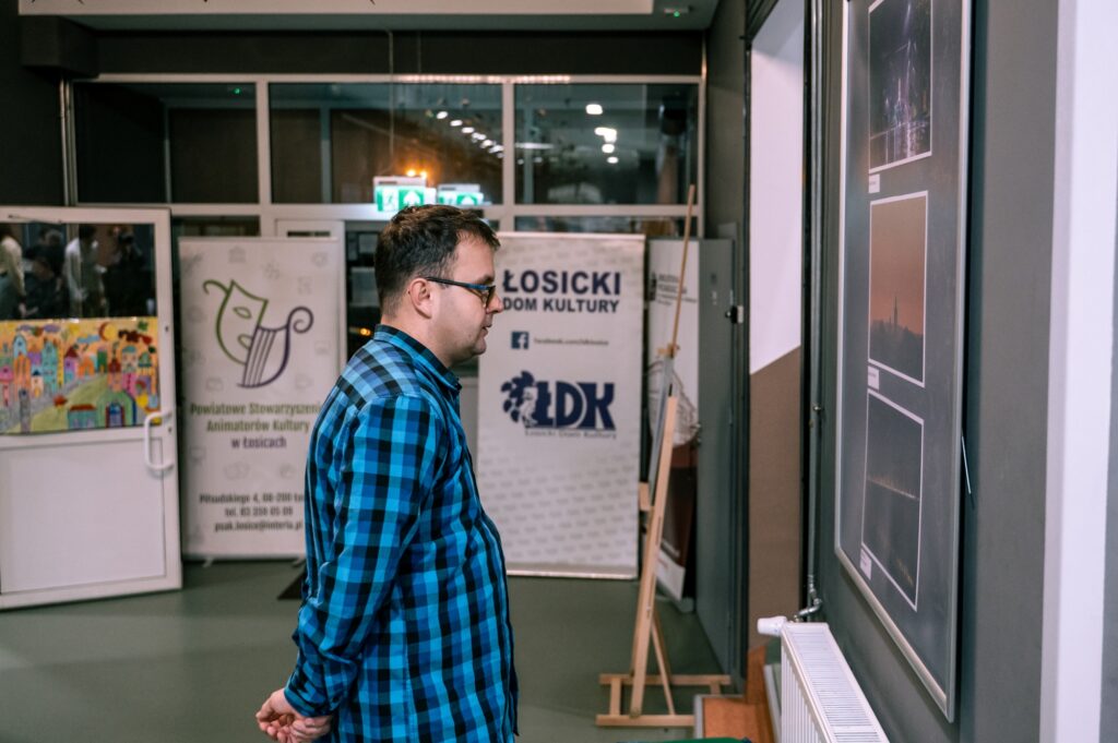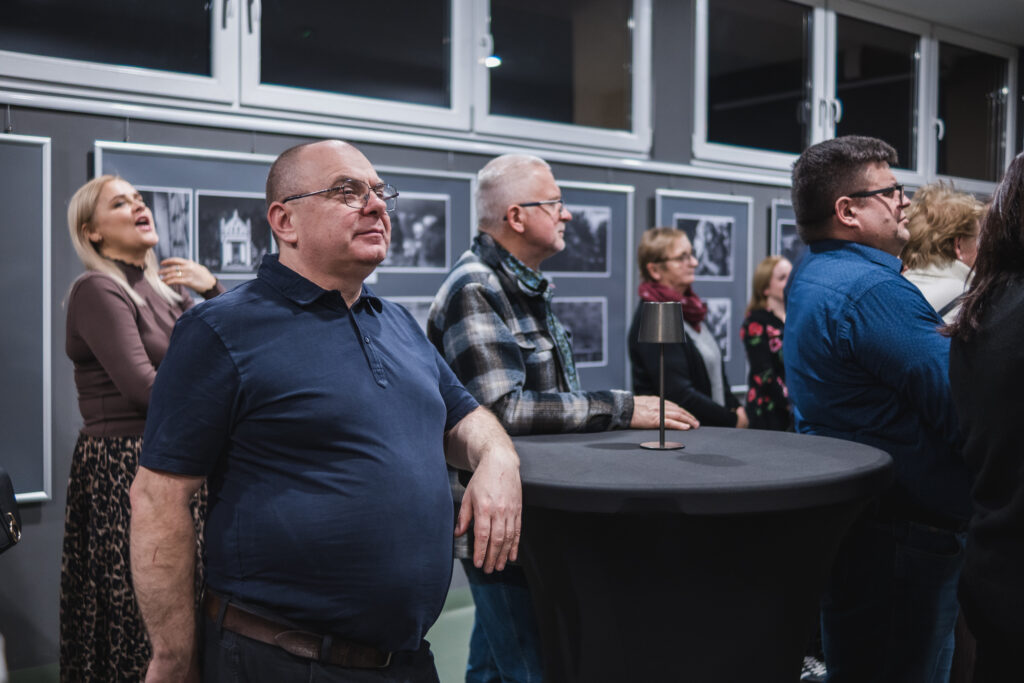 Tym bardziej wzruszający był piątkowy wieczór, w którym hol ŁDK wypełnił się ludźmi jeszcze przed oficjalnym rozpoczęciem wernisażu. Goście zatrzymywali się przy pierwszych fotografiach, jakby od razu czuli, że ten projekt niesie w sobie coś więcej niż estetykę. „Światłoczuły powiat łosicki” stał się dla wielu miejscem spotkania – z obrazem, z drugim człowiekiem, z własną emocją.