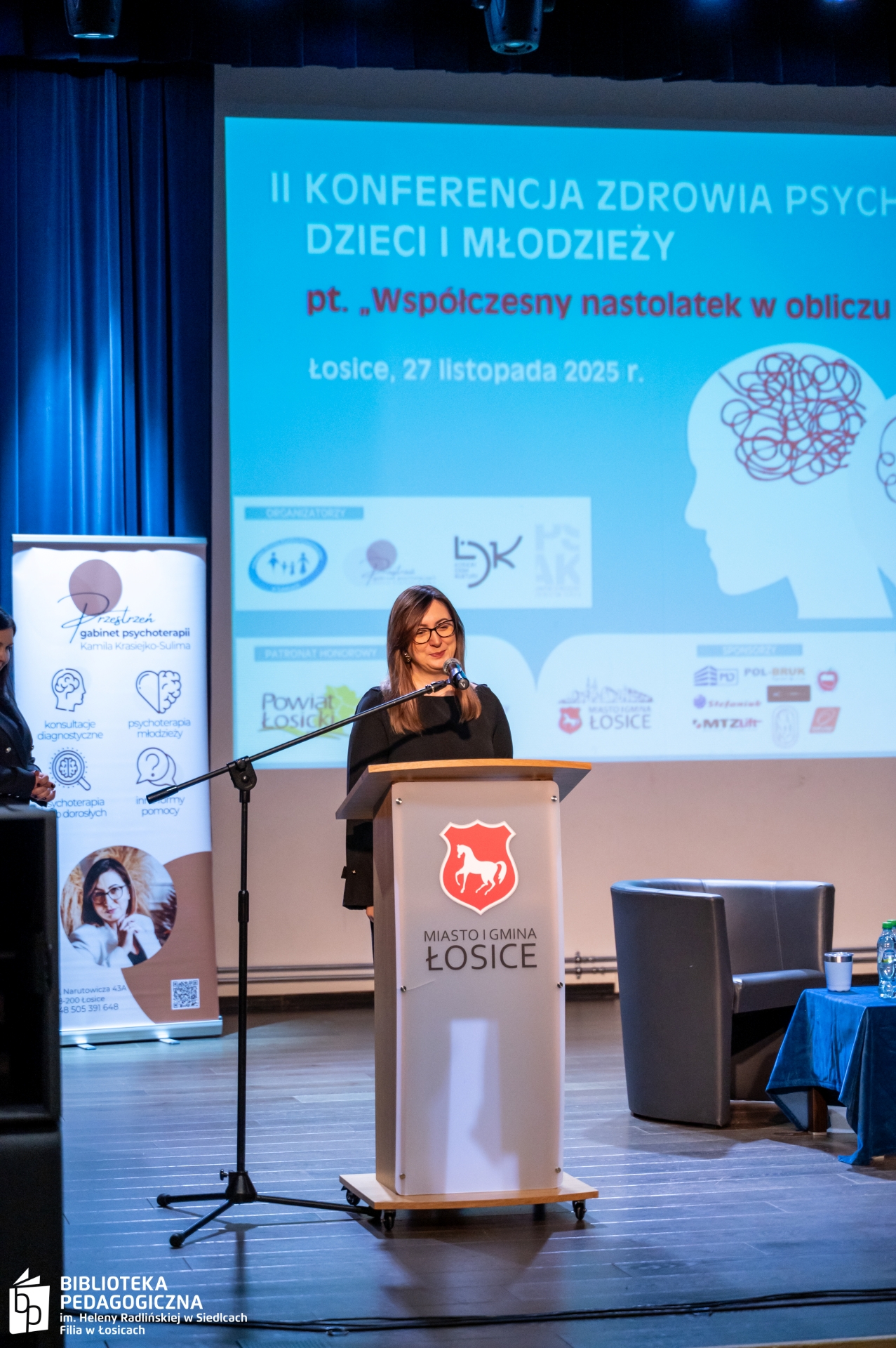 Biblioteka Pedagogiczna w Siedlcach Filia w Łosicach włączyła się w II Konferencję Zdrowia Psychicznego Dzieci i Młodzieży, która odbyła się 27 listopada 2025 roku w Łosickim Domu Kultury. To ważne wydarzenie ponownie zgromadziło wiele osób pracujących z dziećmi i młodzieżą oraz tych, którzy chcieli poszerzać swoją wiedzę z zakresu wsparcia psychicznego młodych.