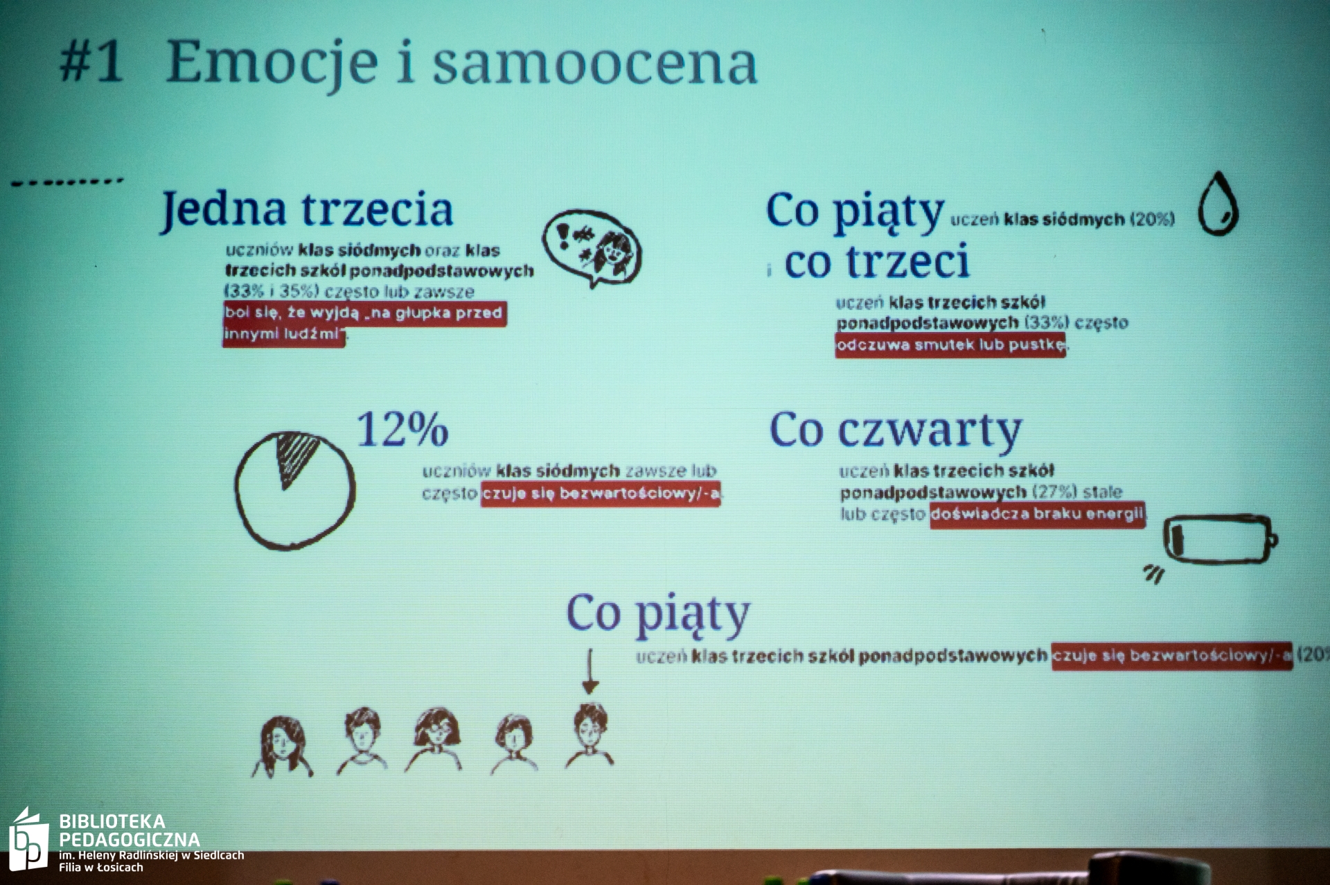 W tym roku Biblioteka Pedagogiczna przygotowała dla uczestników specjalną wystawę książek poświęconych tematyce zdrowia psychicznego dzieci i młodzieży. Znalazły się na niej publikacje dotyczące zaburzeń emocjonalnych, cyberzagrożeń, budowania odporności psychicznej, relacji rodzinnych, pracy z nastolatkiem w kryzysie oraz teksty literackie, które wrażliwie i mądrze opisywały doświadczenia młodych ludzi. Wystawa cieszyła się dużym zainteresowaniem – wielu uczestników podkreślało, że książki są nie tylko źródłem wiedzy, lecz także narzędziem lepszego zrozumienia młodzieży.